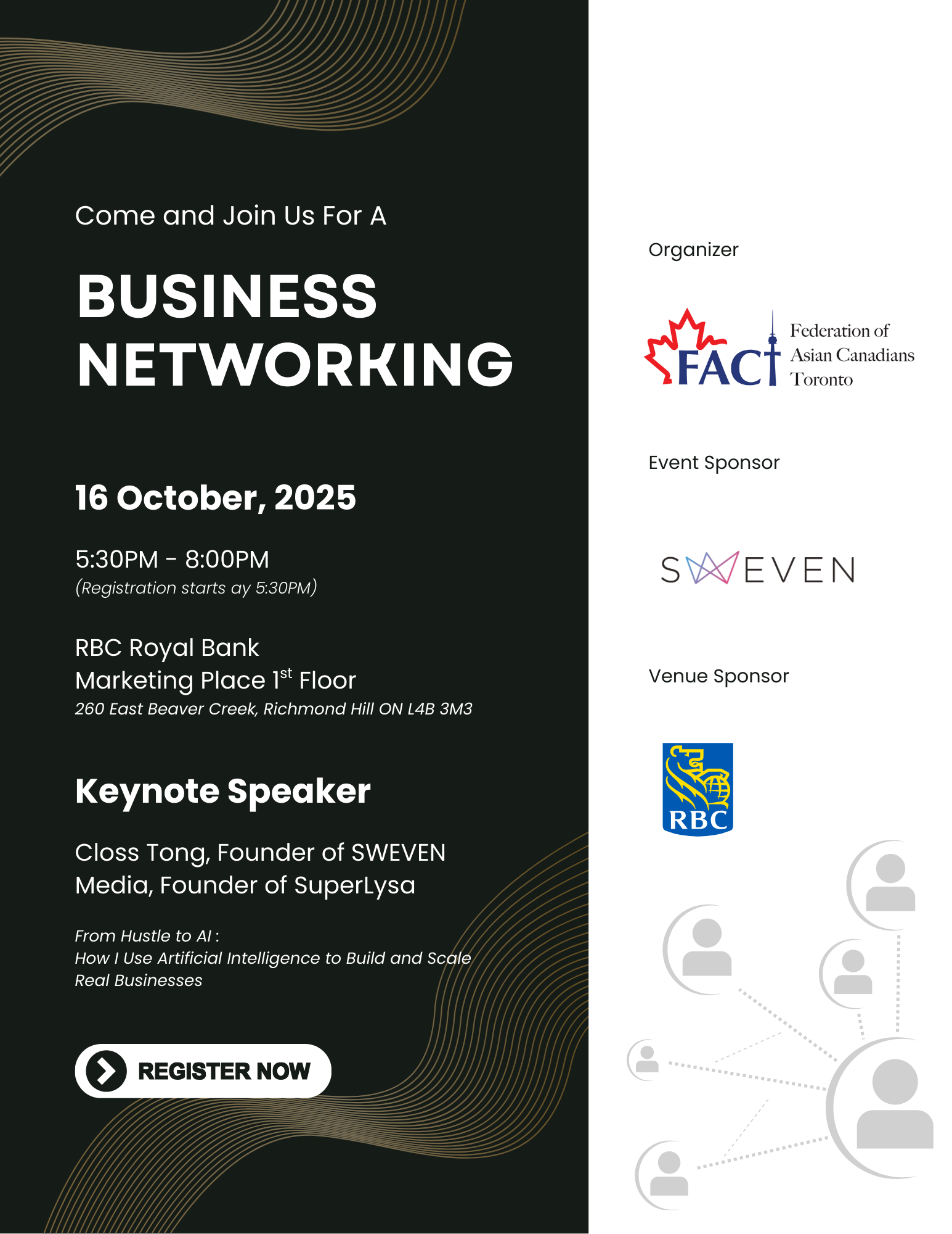 Join us for an evening of real‑world AI and entrepreneurship. Learn how Closs Tong (Founder, SWEVEN Media & SuperLysa) uses AI to build and scale businesses — plus networking with founders, professionals, and partners.